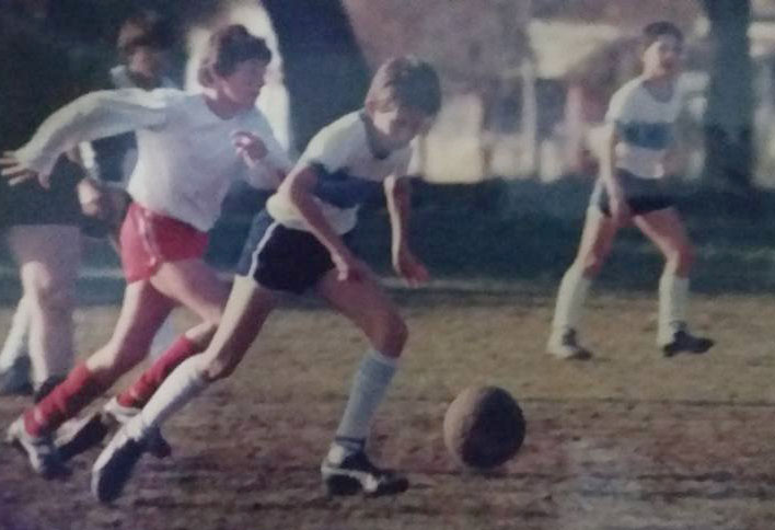 Fabricio Bonvin con la pelota. Detrás Popy. Categoría 1974 de Gimnasia y Esgrima.