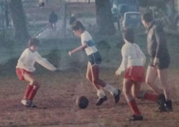 Popy en acción. Zurdo, pelota al pie y medias caídas dicen mucho.