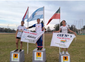 Y algo para destacar que la prueba de lanzamiento de la jabalina tuvo tres atletas de nuestra ciudad dado que ganó Milagros Montes de Oca y la escoltaron, Abigail Viso y Ariadna Stegeman. Algo similar ocurrió en la prueba de salto en largo que ganó Irene Boujón donde la escoltaron Antonia Ruiz Diaz y Pía Mista.
