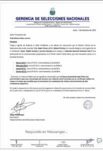 Y esos buenos partidos hizo que en el día de ayer recibiese la mejor noticia para alguien que ama lo que hace. Con solo 13 años y un año más en la categoría Sub14, recibió la notificación firmada por Jorge Miadosqui, Secretario del Departamento de Selecciones, que había sido citada para integrar la selección argentina y que este martes debe presentarse, muy temprano y ya lo ha hecho, en el predio “Lionel Messi” para comenzar los entrenamientos del seleccionado sub17 bajo las órdenes de Clarisa Huber y Christian Meloni.