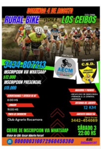 Nuestra zona será escenario de una nueva fecha del rural bike, será la cuarta y se disputará en la zona de Colonia Los Ceibos bajo la organización del club Agrario Rocamora y la colaboración de pedalistas uruguayenses.