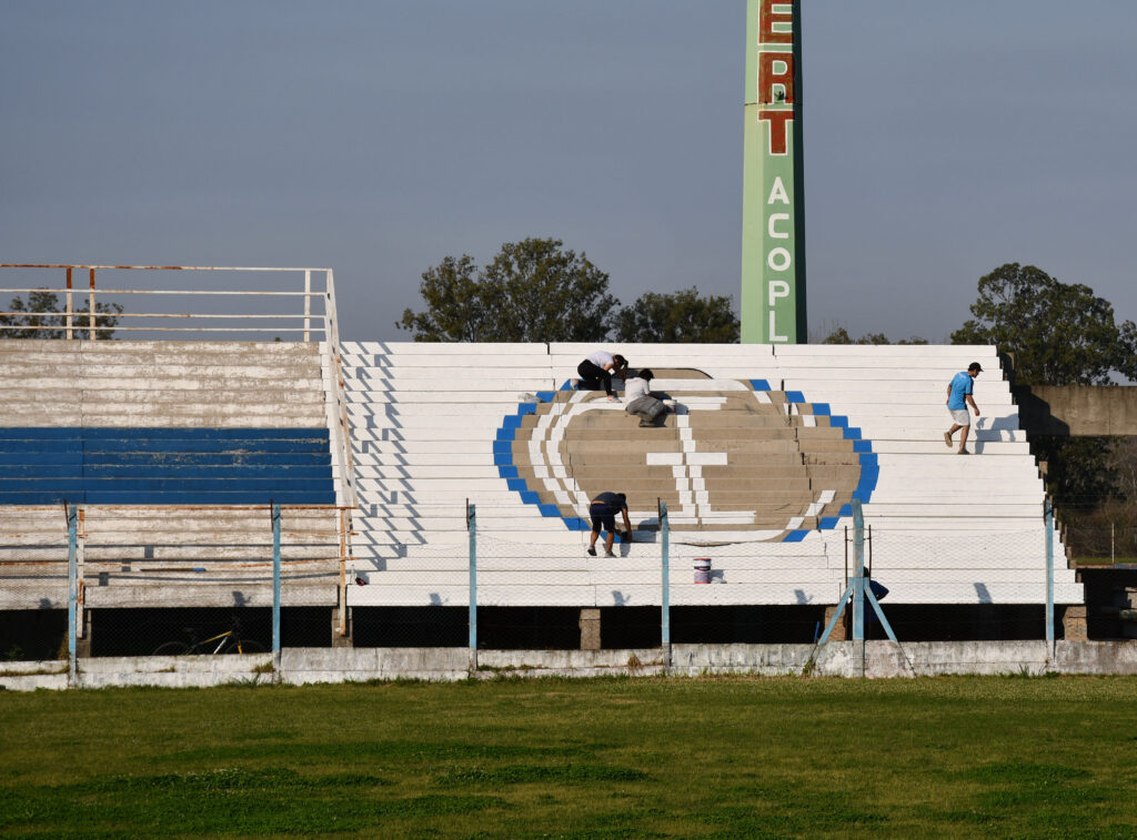 En tanto ese grupo de colaboradores que ya pintó el nombre del club e la tribuna sur, está abocada ahora al pintado del escudo del club en el sector nuevo de la tribuna este. Además se ha limpiado todo el sector de gradas y plateas para luego proceder a pintarlos.