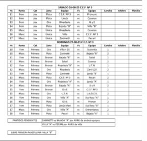 La actividad comenzará el sábado a las 11:00 con una jornada plenamente destinadas a la competencia de juveniles. El domingo la actividad comenzará a las 10:00 y estará dedicada a las primeras tanto de varones como de mujeres.