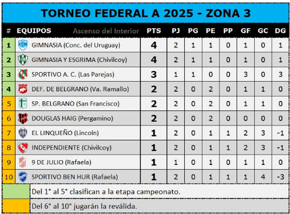 Con la segunda fecha disputada en forma parcial así están las posiciones (gentileza Ascenso del Interior):