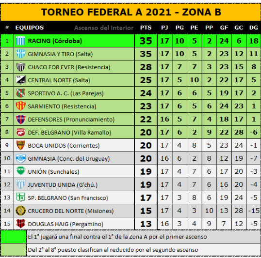 Se completó este sábado la 18ª fecha de la Zona Clasificatoria B del Torneo Federal A.