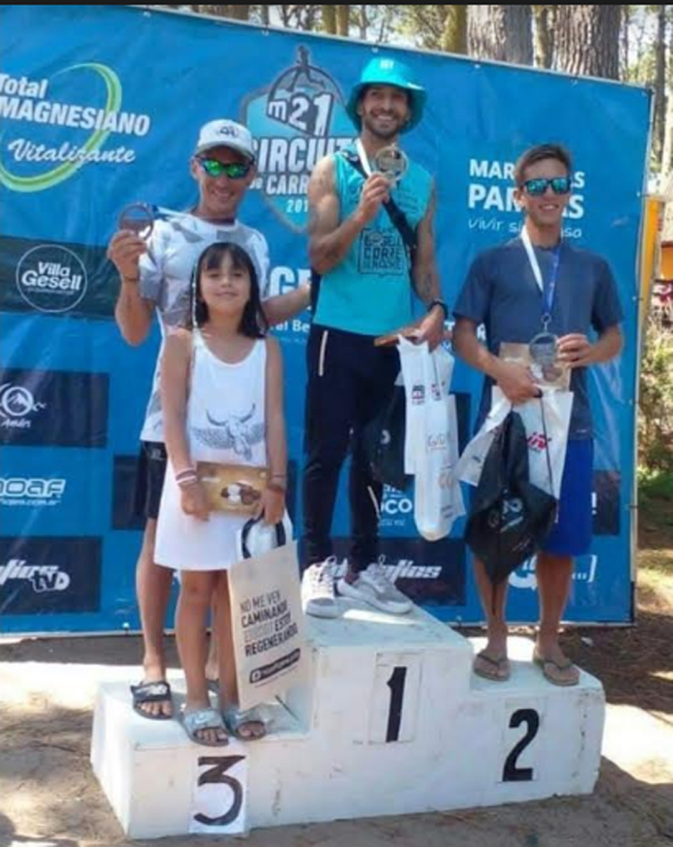 En esta prueba organizada por FC Producciones, con numerosos atletas en competencia y un circuito muy complicado con muchas dunas y arena, Florencia fue segunda en la general y Jorge tercero entre los varones.