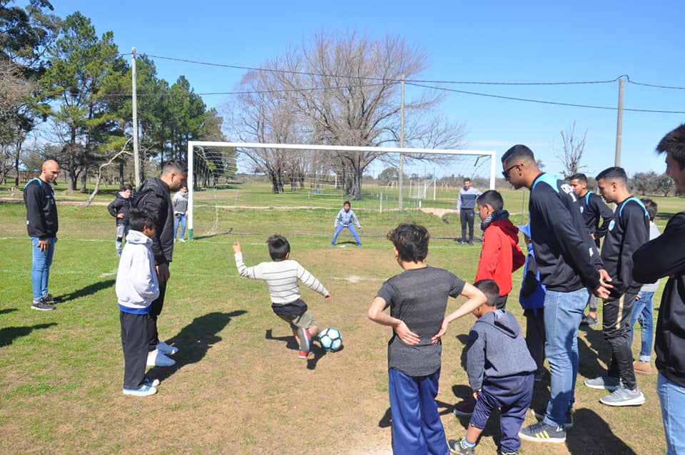 Hubo charla con los chicos y mucho juego con la pelota para que tengan un día diferente y como dice el facebook del club «Gracias por la invitación y un placer poder sacarle una sonrisa a los chicos».