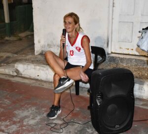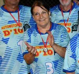 Alejandra Lombardi, la locutora del torneo que alegró a todos y, pese a que veía medallas y copas entregadas a todos, «yo no tuve ninguna decía». Mariela Castillo y Marita Tomba las encargadas de premiar a los mejores; Mirta Rey que se olvidó del terrible calor y se puso al frente de la parrilla para vender «los mejores choris del condado» según dijo. Y en nombre de ellos van nuestras felicitaciones a todos los que pusieron su granito de arena para el éxito del torneo.