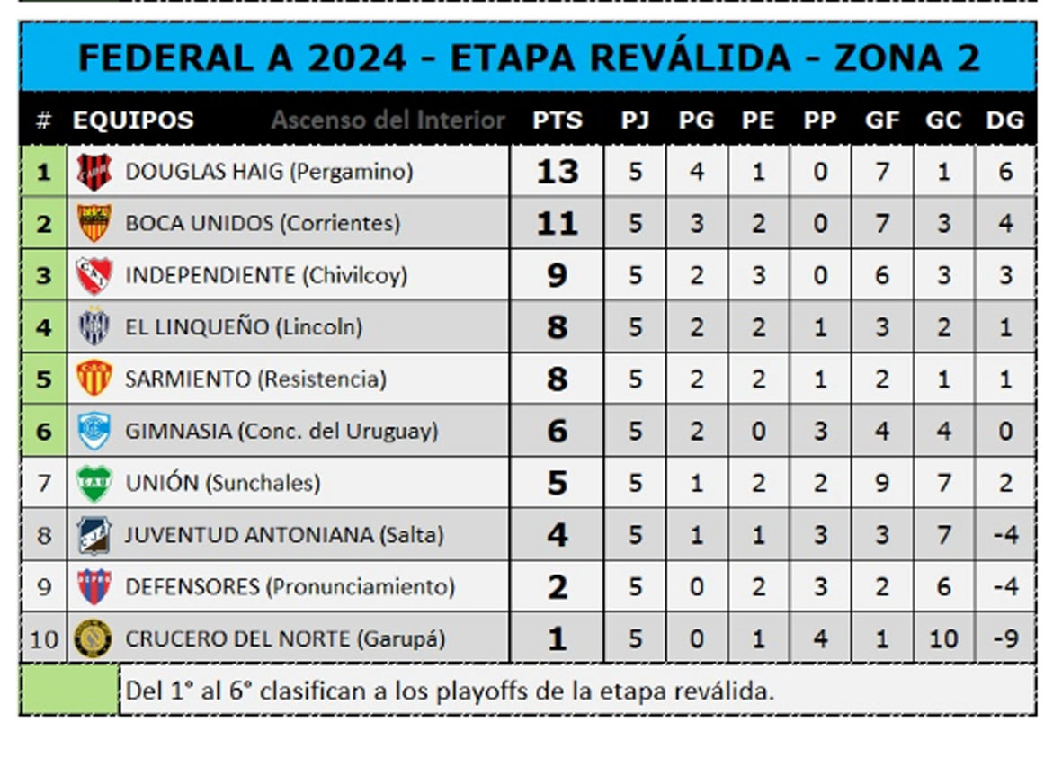Cumplidas 5 fechas las posiciones en la dos tablas que interesan están de esta forma (gentileza Ascenso del Interior)