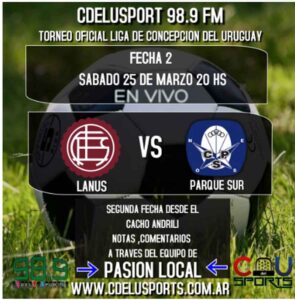 CdeluSport anunció que estará transmitiendo el partido de este sábado en el «Cacho» Andrilli de Rivadavia. El equipo «Pasión Local» que dirigen Ariel Besel y Tati Poggio transmitirá desde las 20:00 el partido de primera desde la FM 98,9.