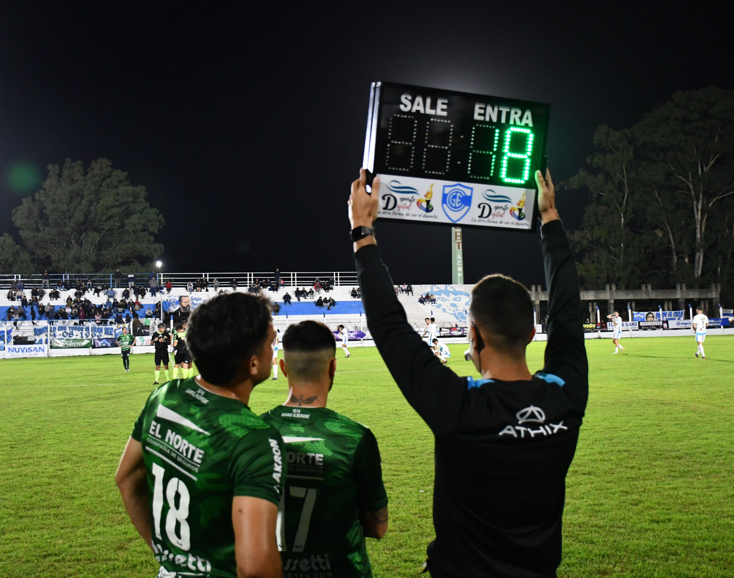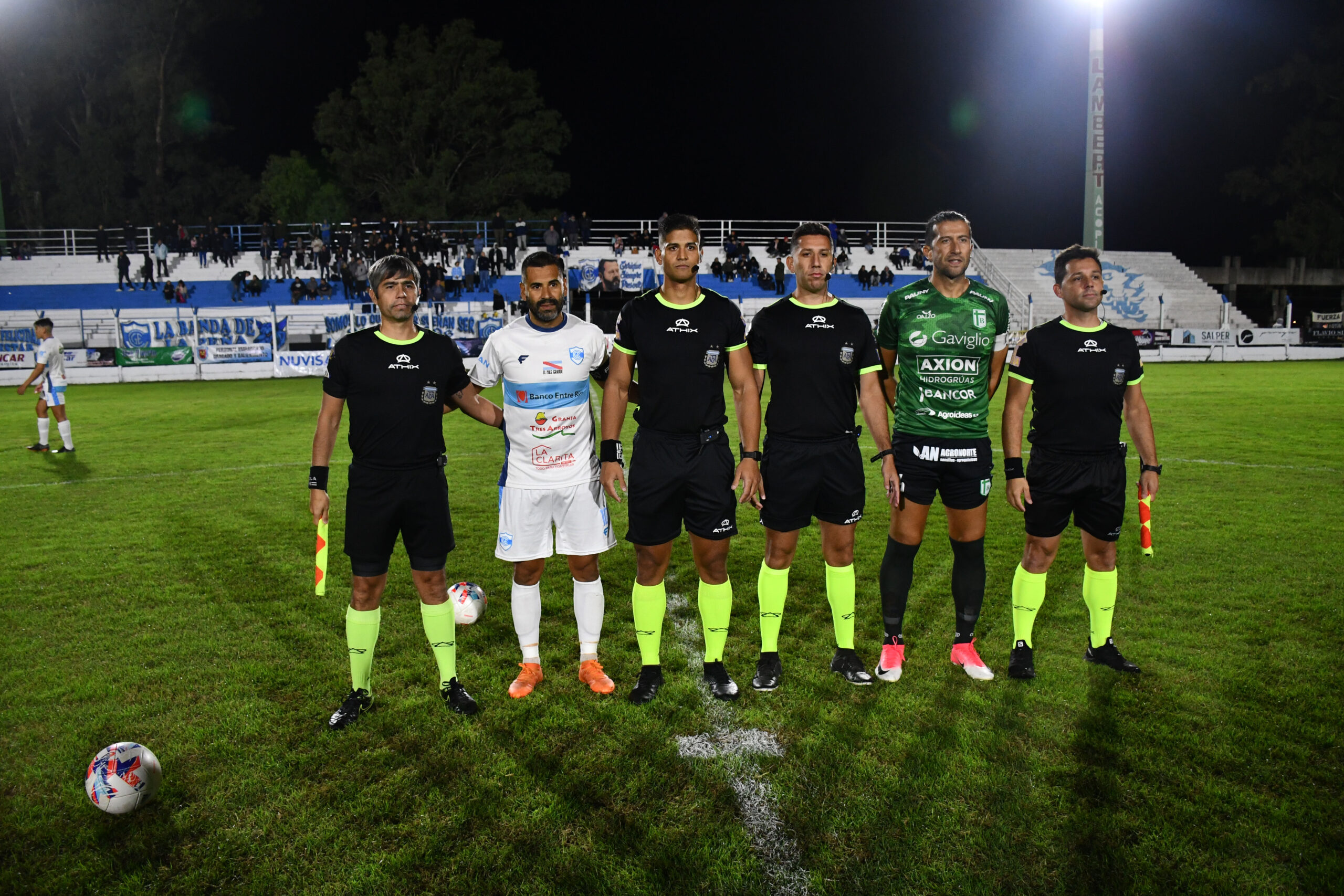 Juan Ignacio Tegli, hincha del Lobo desde siempre y actualmente cumpliendo funciones de camillero aunque le ha tocado hacer otras tareas. decidió donarle al club el tablero electrónico que debutó esta noche con gran triunfo. Y como agregado le puso la publicidad de Deporte Digital. Gracias infinitas Juanchy.Para que no se diga que es «la foto que no se ve en ningún lado». Los cuatro árbitros del partido junto a los capitanes de ambos equipos.