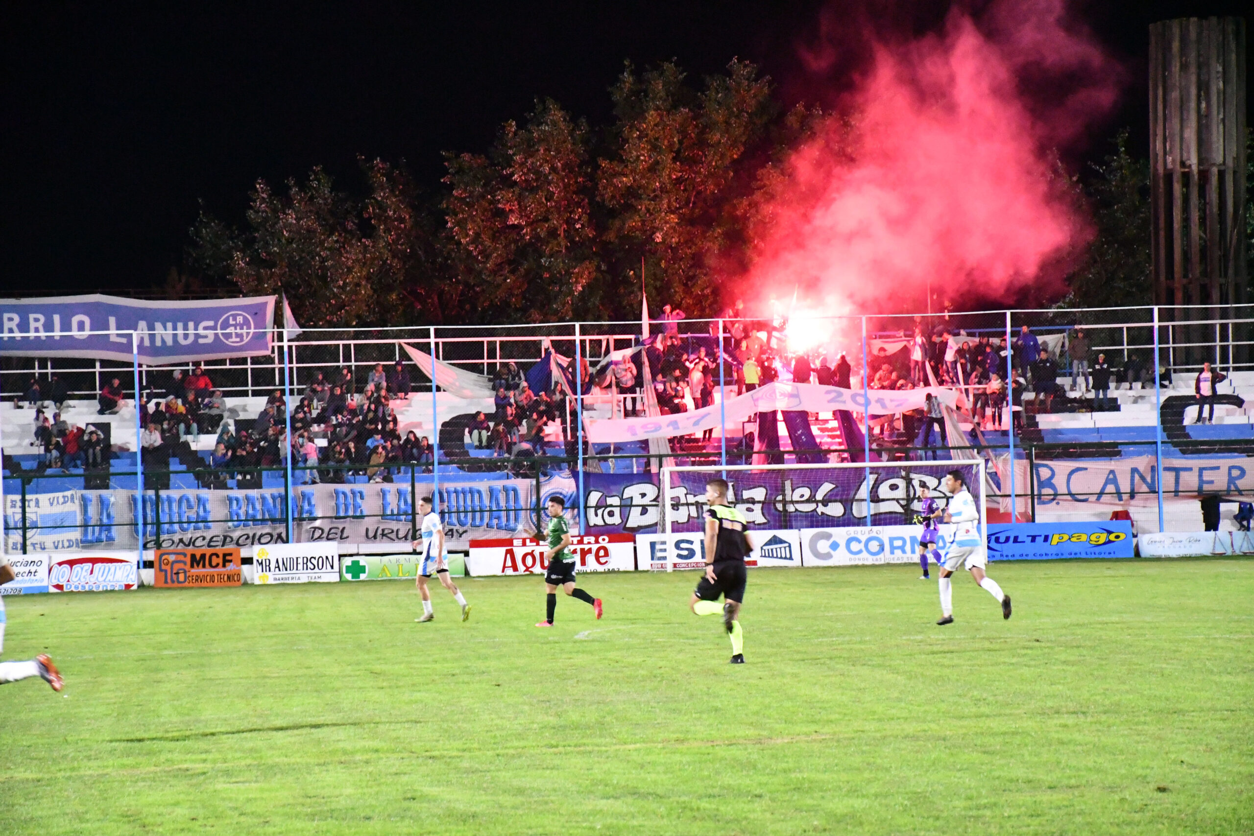 La novedad de Gimnasia en esta noche fue que los «alcanzapelotas» fuesen las. Esto porque cuatro jugadoras del equipo de las Lobitas estuvieron a su cargo la tarea. Muy buena idea de la gente del Lobo para que las chicas sigan apostando al fútbol.La hinchada del Lobo se mostró muy cambiada en lo que hace a sus canciones. Nuevas canciones, el rock presente y las luces le daban colorido a la noche uruguayense.