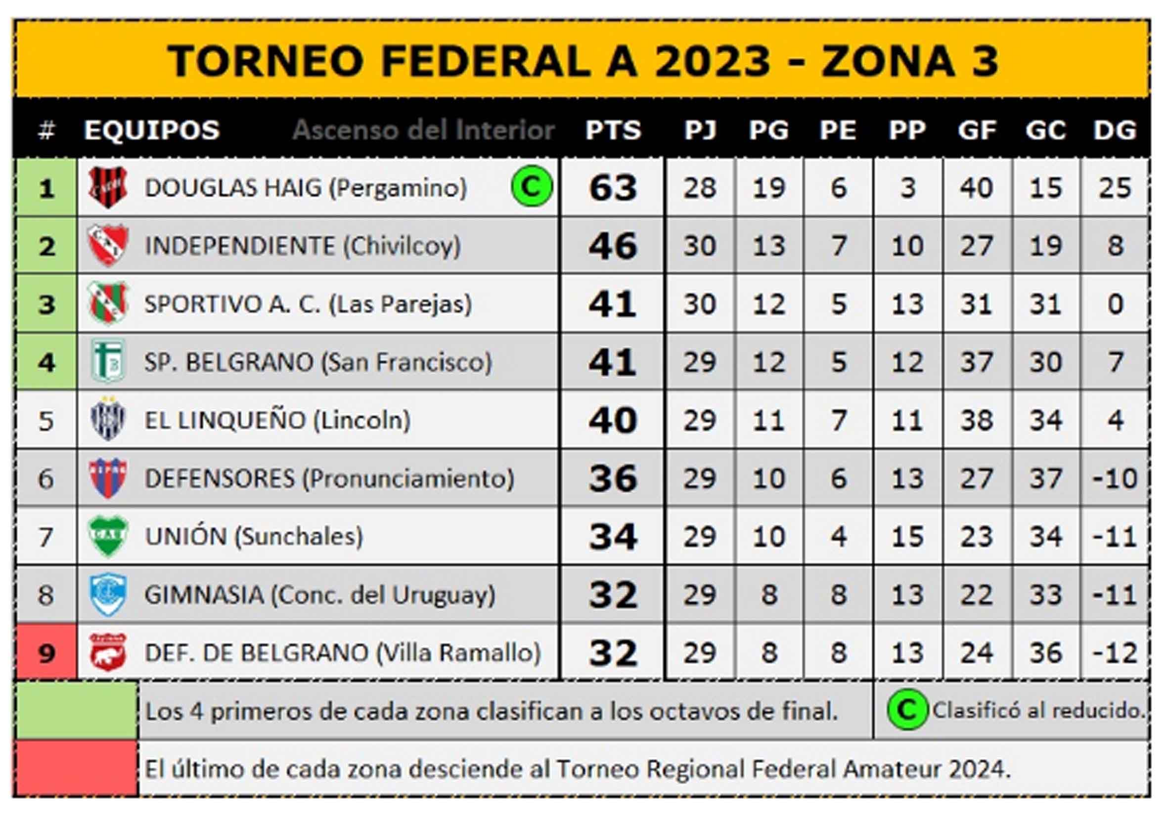 A falta de un partido de la fecha 33ª así quedaron las posiciones en la Zona 3 (gentileza Ascenso del Interior)