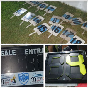 Ahí nos dimos cuenta de que había varios tableros y tablitas para los cambios. En el suelo estaban las tradicionales y legendarias tablitas donde no estaban los números 19 y 20 que se usan desde este torneo y también los más modernos, los digitales.