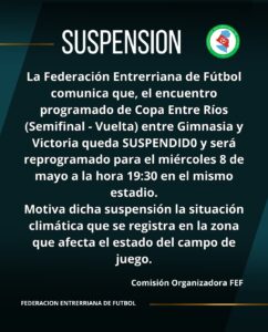 En horas del mediodía llegó la confirmación por parte de la Federación Entrerriana de Fútbol (FEF) que, en su informe, también dice que el partido se disputará el próximo miércoles con idéntica programación.