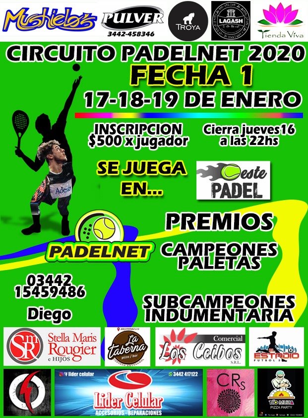 El Circuito 2020 habrá de dar comienzo este viernes jugándose en el complejo Oeste Padel de Celo Argachá y Nacho Maresca; para el mismo las inscripciones, a un precio de $ 500 por jugador, cerrará el jueves a las 22:00.