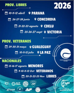 La FEP, afiliada a la Federación Argentina de Padel (FAP) también dio a conocer los días de los nacionales tanto de menores como de libres y veteranos.