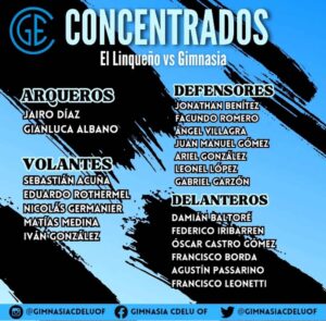 Este sábado, a las 15:00, viajó el primer equipo de Gimnasia que ya se instaló en Junín para viajar este domingo rumbo a Lincoln. Los jugadores que viajaron fueron estos: