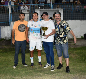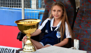 Los integrante del Consejo Directivo de la Liga han tomado la sana costumbre de entregar las copas a los campeones tras la finalización de cada torneo. Ayer se la entregaron a Rivadavia por su título en tercera y la otra quedó a la espera del campeón del primera pero con una muy buena custodia. La bella Emilia, hermana de Nacho Vargas, se sentó a su lado como para que nadie se la lleve.