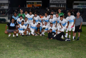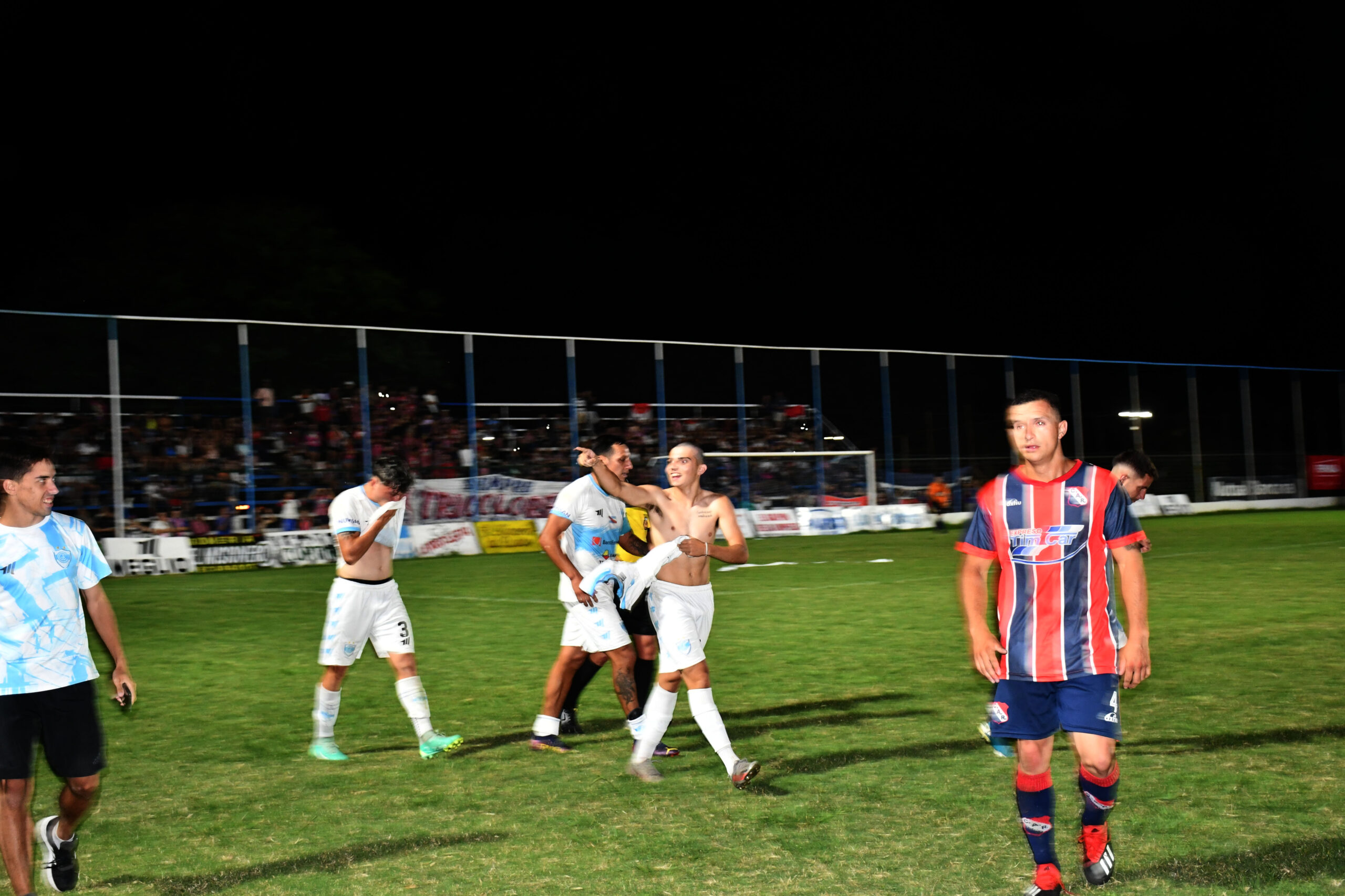 Ronaldo Martínez fue el autor del gol del triunfo que luego desató un largo festejo de los chicos del barrio Santa Teresita con su gente donde abundaron las bengalas azules y rojas.