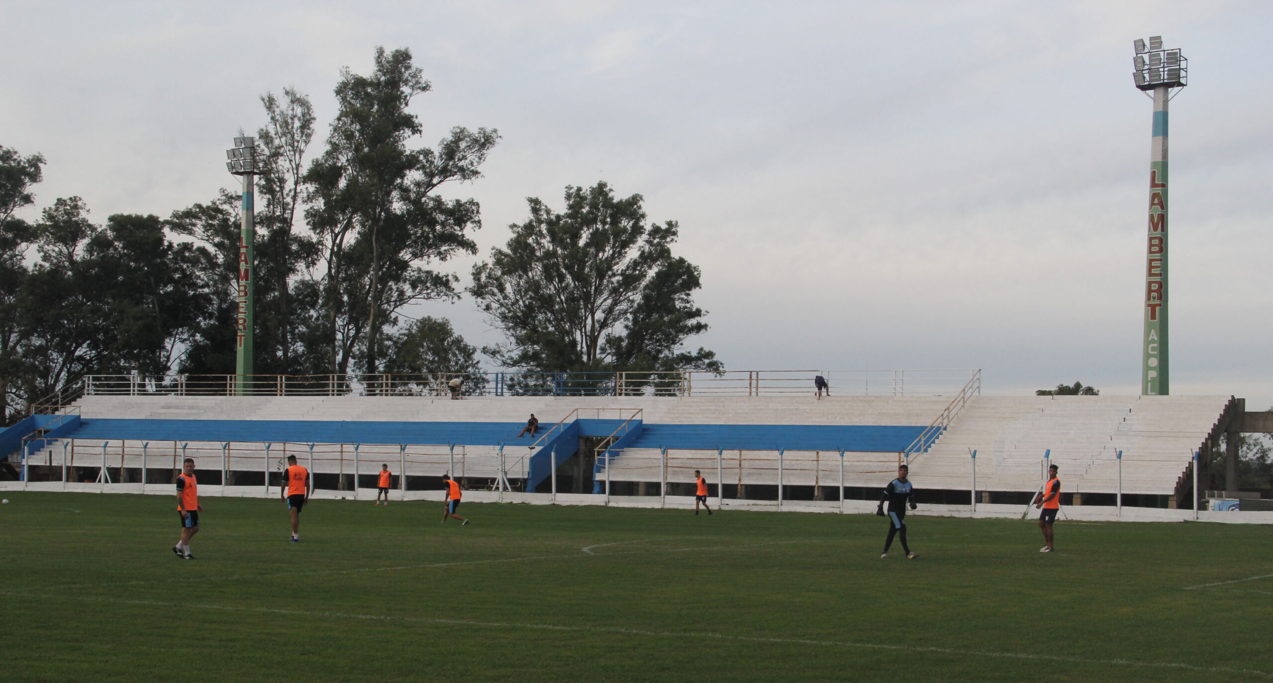 Mientras entrenaba el equipo de Hernán Orcellet, en el estadio se seguían realizando trabajos. En el sector norte de la cancha se estaba terminando el paredón del alambrado que se ubica detrás del arco y en la tribuna este se pintaban las baranda.