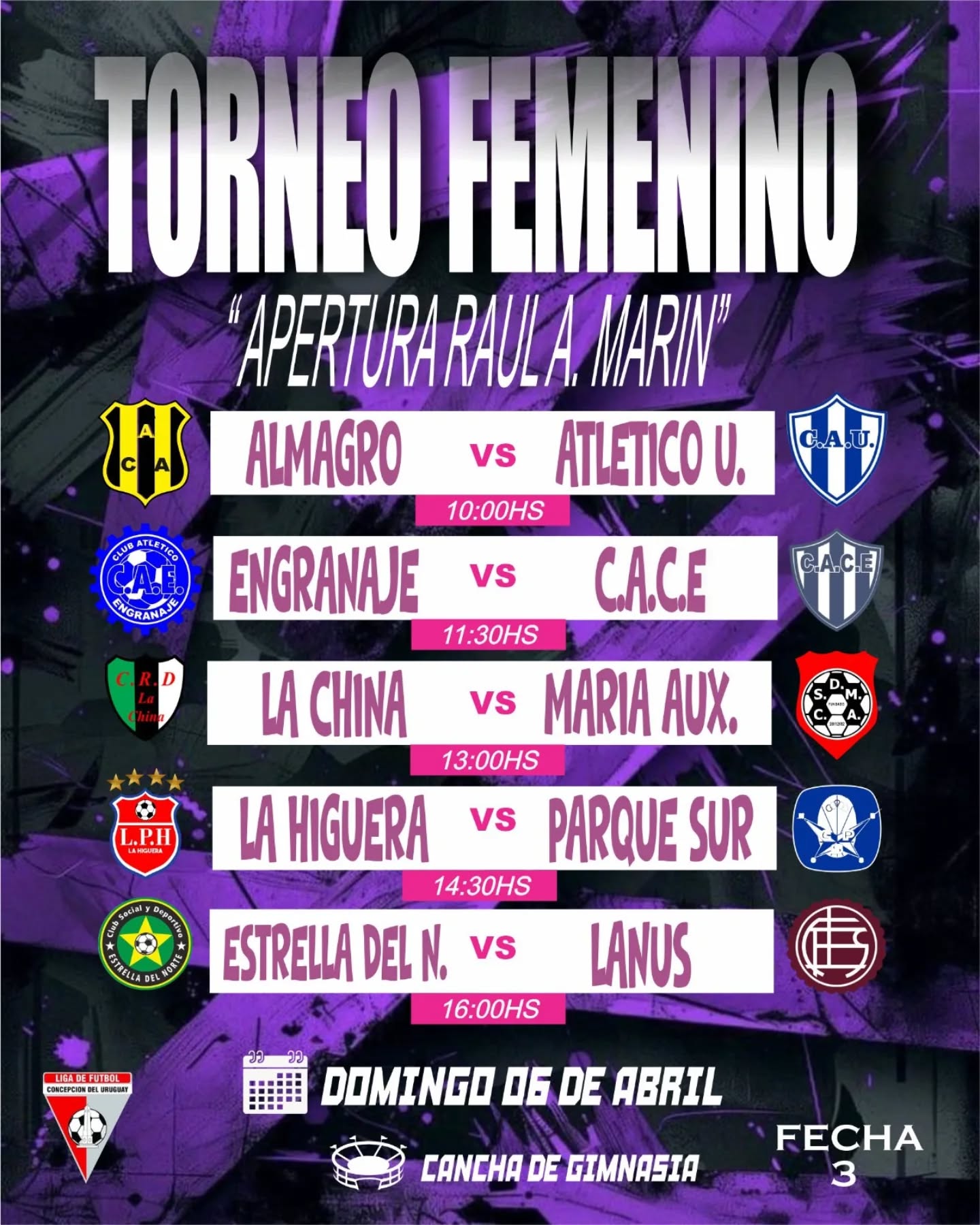 Este domingo, desde las 10:00, se jugara en cancha de Gimnasia la tercera fecha del Torneo Apertura de equipos femeninos.