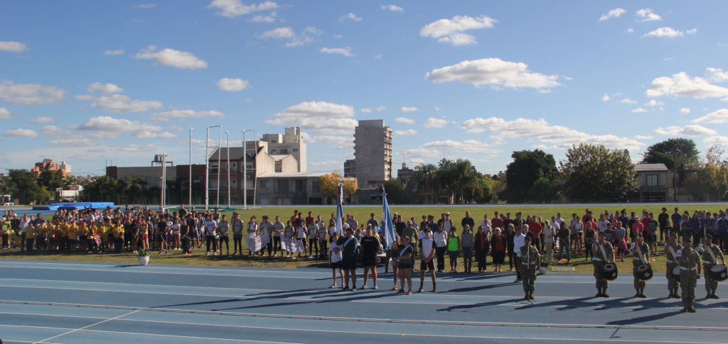 «De regreso en el Centro, y con Banda del Batallón de Ingenieros Blindado 2 del Ejército Argentino “Teniente Saturnino Filomeno Berón” quien ejecutó la Marcha del Deporte en el ingreso de los chicos al Centro y luego el Himno Nacional con el ingreso de los abanderados, Caterina y Lucho, atletas locales.