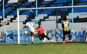 «Pifia» de Bernay en un despeje y córner para Almagro. De ese córner llegó al 2 a 2 a través de Nazareno Monzón.