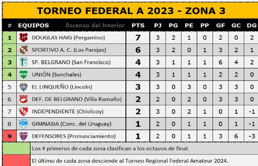 Cumplidas 3 fechas así están las posiciones en la Zona 3 (gentileza Ascenso del Interior)