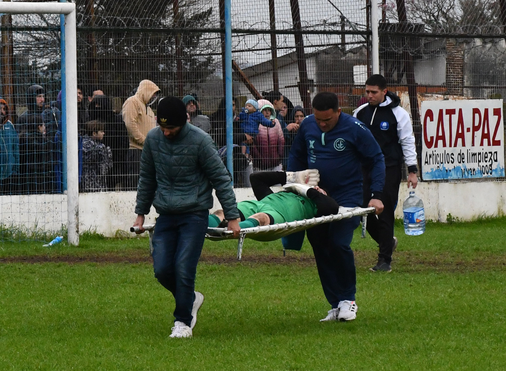 Cuando Gimnasia ya ganaba por 1 a 0 y encontraba espacios por el adelantamiento de Parque Sur; una corrida de Iván González terminó con el remate del delantero que Ale Asín tapa muy bien pero, el central que venía corriendo detrás lo choca y le produce un corte cerca de su ojo derecho. El arquero quedó tirado un largo rato hasta que fue retirado en camilla y reemplazado por Franco Delese. Esta noche nos informaron desde Parque Sur que el arquero está bien y que sólo fue un susto.