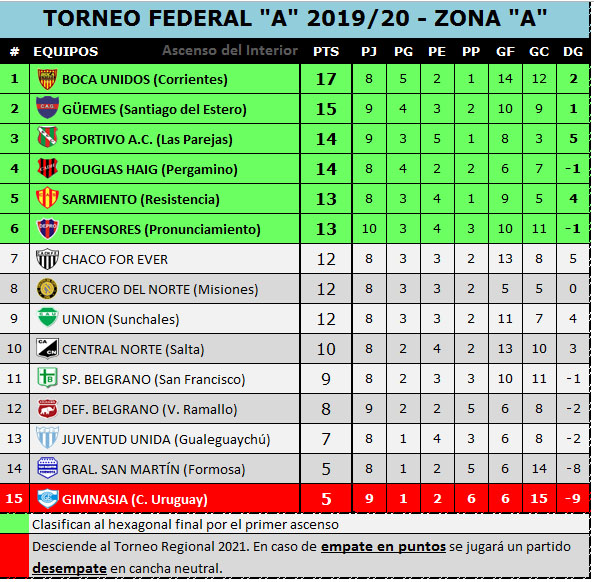 Tras este partido adelantado así están las posiciones de la Zona A (Gentileza Ascenso del Interior):