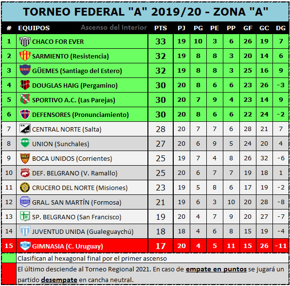 Cuando a la 21ª fecha le resta un partido, así están las posiciones en la Zona A del Torneo Federal A. (Infografía Ascenso del Interior)