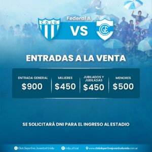 Desde Juventud Unida de Gualeguaychú se dieron a conocer los precios de las entradas con la novedad que, para poder entrar, se debe mostrar el correspondiente DNI. Esto seguramente sería para que no ingresen los aficionados de nuestra ciudad que concurran.