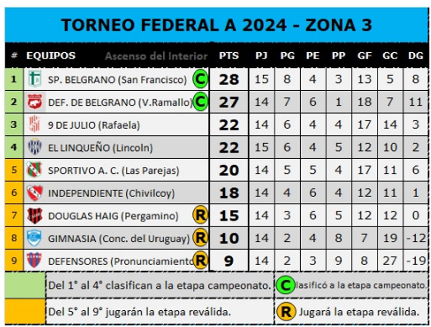 Completada la 16ª fecha así están las posiciones (Gentileza Ascenso del Interior):