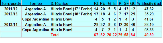 Gracias a las eficientes estadísticas que maneja Sergio Pilepich damos a conocer los números de Hilario Bravi dirigiendo al Lobo.