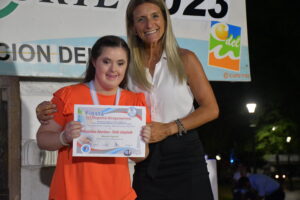 Su madre, Liliana Múller, fue la encargada de recibir el trofeo entregado por el intendente Lauritto y el Senador Martín Oliva.