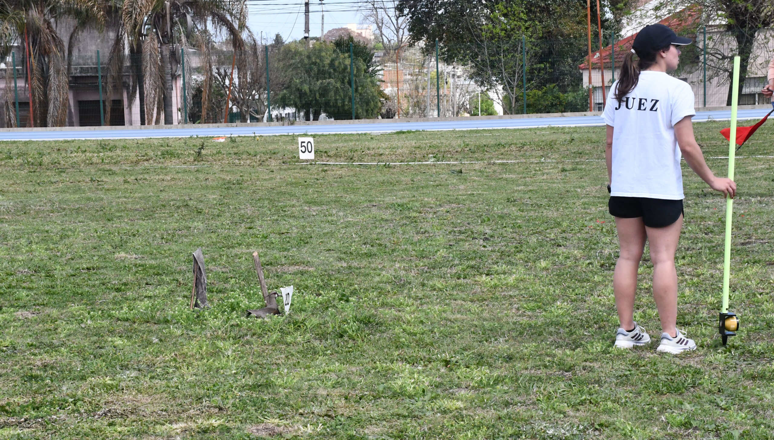 En el CEF Nº 3 hicieron el nido justo en la zona del lanzamiento de la jabalina. Por eso los organizadores pusieron señales al respecto y las jabalinas siempre estuvieron lejos de su nido pero, el tero lejos de alejarse y ni ahí que dejaban que alguien se acerque. La profe Gaby nos informó que había cuatro huevos y la defensa del nido era «a cara de tero».