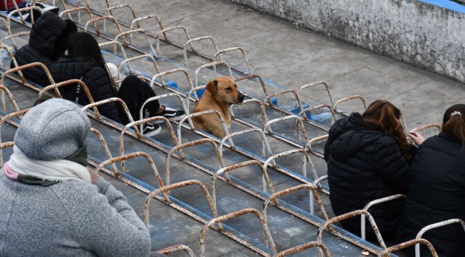 Pero este «amigo de cuatro patas» no se quiso perder detalle de nada y se instaló en su butaca muy temprano, viendo lo que pasaba con los chicos del «Decano» en el provincial pero esperando por el clásico de la tarde.