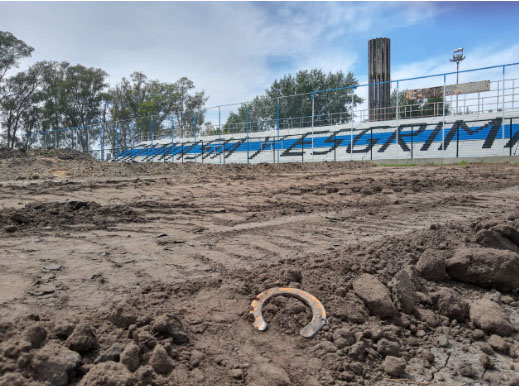 En este caso se trata de una foto cedida por Mario Bonnot que, además de ser amigo es presidente de Gimnasia y Jefe de Redacción en «La Calle». Cuando se estaba arando el estadio Núñez para su resembrado apareció esta foto que dio para algunos comentarios y muchas preguntas ¿De quién será? ¿Quién la habrá perdido?. Nico Torres, quien entiende ‘el juego’ y de qué se trata todo esto nos dijo de inmediato ‘mis botines’. Muchos dirán que los botines de Nico es más seguro que estén en una canilla ajena pero bueno….. Otro amigo comentó, pidiendo reserva, ‘ojo que puede ser de algún técnico también’. Lo cierto es que cuando se araba el Núñez apareció esta herradura cerca del banco de los suplentes del local.