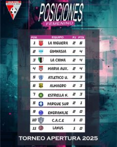 La fecha arrojó algunos resultados que llaman la atención; Almagro, bicampeón del 2024, perdió 1 a 0 ante María Auxiliadora; la goleada de La China con Engranaje por 4 a 0 con dos goles de Anto Benítez que la posicionan como candidatos a pelear por el título y el 14-0 que Gimnasia le propinó al Atlético Colonia Elía.