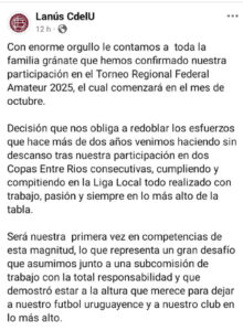 Al respecto nos informaron desde el club del sur que “desde Parque estamos esperando la confirmación por parte de la Liga pero tenemos la cabeza puesta en lo que será nuestra cuarta participación de manera consecutiva en el Torneo Regional Amateur». Si la intención de Parque Sur es participar lo que resta hacer es solo tema de papelería y seguramente desde la Liga se solucionará.