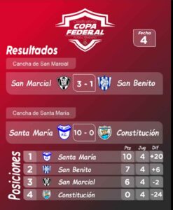 Se disputó, el pasado domingo, la cuarta fecha del Clasificatorio a la Copa Federal que organiza la Federación Entrerriana.
