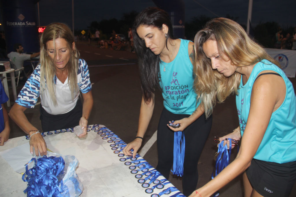 Sector de inscripciones. Fueron muchos los atletas de otras ciudades que comenzaron a inscribirse pasadas las 18:00.Sector de masajes previo y posteriores a la carrera.Las chicas de la organización ordenando las medallas para todos los participantes.