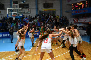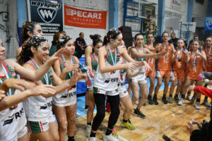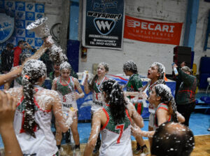 Tras el pitazo final aparecieron los tarros de espuma y el rectángulo «Celeste» se convirtió en una fiesta de espuma, gritos y hasta baile de las chicas entrerriana a las que se sumaron las de FEBAMBA para darle un digno cierre al certamen.