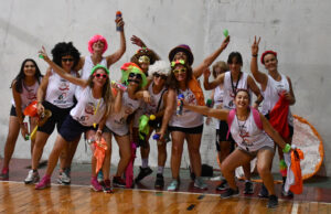 Tras el ingreso de los varones fue el turno de los equipos de chicas y ahí llegó la explosión en el desfile. Las Orgullosas, con camisetas y banderas del Orgullo Gay coparon el centro del campo de juego de Almafuerte. Revoleo de banderas, baile, brindaron un espectáculo dejando en claro que para vencerlas en el tema presentación tendrían que hacer mucho y tener enorme originalidad.