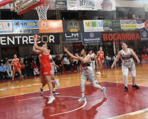En el segundo tramo Rocamora siguió corriendo la cancha para intentar superar a un rival que no se la puso fácil, si bien consiguió una ventaja de nueve puntos (32-23) al cierre del primer tiempo quedaron en un apretado 32-29.