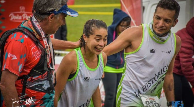 Marcelo y Sol Morúa ganando, en pareja, los 50k del Cruce de Salto Grande donde incluso le ganaron a dúos de varones.