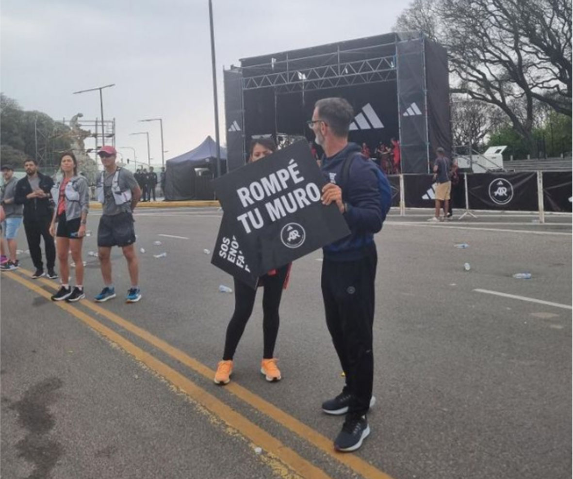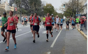 Comenzamos a correr, ahora había que ejecutar todo lo que se había planificado para poder terminar de la mejor manera. Había que recordar los puestos de hidratación, no había que olvidarse de comer kilómetro a kilómetro para que el cuerpo resistiera las 3 ó 4 horas de carrera. El clima fue un desafío más, se largó con 18 grados y una humedad del 80 por ciento había que estar muy atento a la hidratación. Los kilómetros pasaron sin sobresaltos fuimos pasando por lugares emblemáticos de Buenos Aires como el Obelisco, el estadio de River Plate, la Bombonera , la Casa Rosada, el Planetario, Puerto Madero y la famosa calle Corrientes. Esos kilómetros se disfrutaron mucho ….hasta el kilómetro 30; ahí ya fue otra la historia. Sabía que esos momentos duros iban a llegar y también sabía que me había preparado para no desistir. La cabeza decía camina un poco, no puedo más, los kilómetros no pasan, peero…. hay que engañarla o ser positivo como quieran decirlo y hay que convencerla de que… un poco más puedo, no falta nada, este kilómetro me sentí mejor que el anterior, mi familia está en la llegada, quiero contarles a mis hijas como logré correr, etc etc, jajajjaja esto también se prepara. En esos kilómetros recuerdo una señora entre el kilómetro 30 y 40 que sostenía un cartel que decía algo como, «Rompe tu muro», eso era lo que estaba haciendo kilómetro a kilómetro rompiendo un muro, … un muro mental y después de eso estaba la llegada, fue emocionante la verdad, unas lágrimas me ganaron en ese momento.