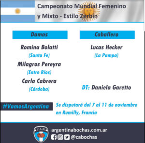 El certamen se jugará del 7 al 11 de noviembre en Rumilly, Francia. y si bien aún no hay nada dispuesto se estima que estarán viajando 4 ò 5 días antes rumbo al Viejo Continente. «Todavía no nos dijeron bien. Justamente esta noche, a las 21:00, nos reunimos vía zoom con dirigentes, técnicos y los chicos que viajan al mundial de Argelia. Para definir como sigue el tema de las prácticas y los gastos que vamos a tener cada uno».