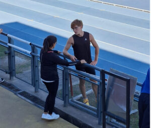 Todos como presagiando que algo grande podía ocurrir en este provincial U20 donde Nico ya había ganado la prueba. Sus saltos previos muy cerca de su mejor marca (7 metros) y algunos más lejos que fueron nulos, pero le quedaba un salto.